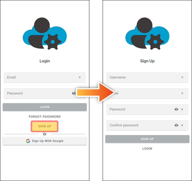 Vor der Nutzung müssen Sie einen Account registrieren, dieser ist kostenlos. Tippen Sie auf "Sign Up" und füllen Sie die Eingabefelder auf der nachfolgenden Seite aus. Tippen Sie anschließend auf "Sign Up" um die Registrierung zu bestätigen. Sie erhalten zeitnah einen Aktivierungslink auf die verknüpfte Mailadresse. Alternativ steht Ihnen das Login per Google- oder Apple Account zur Verfügung.