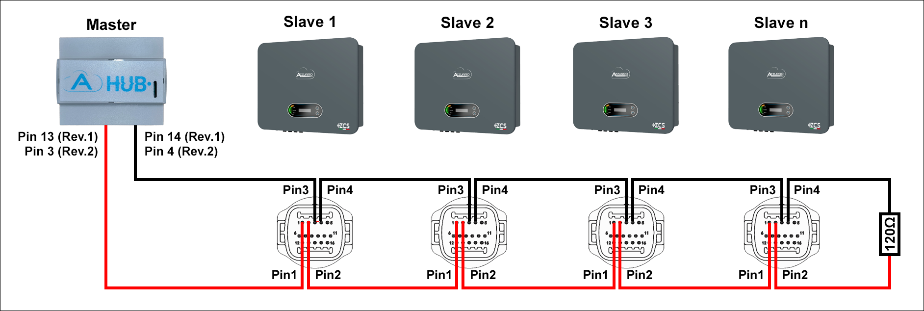 Wechselrichter 1 (Pin 4) -> Wechselrichter n (Pin 3)